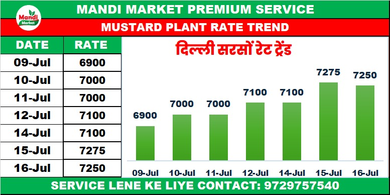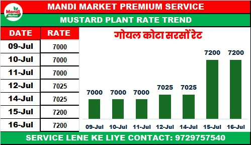 सरसों भाव ₹ 6950 तेजी ₹ 25