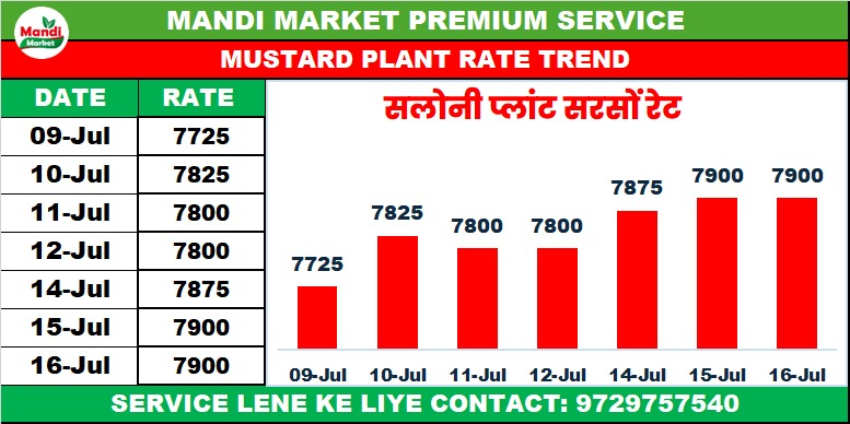 सरसों भाव ₹ 6825 तेजी ₹ 50