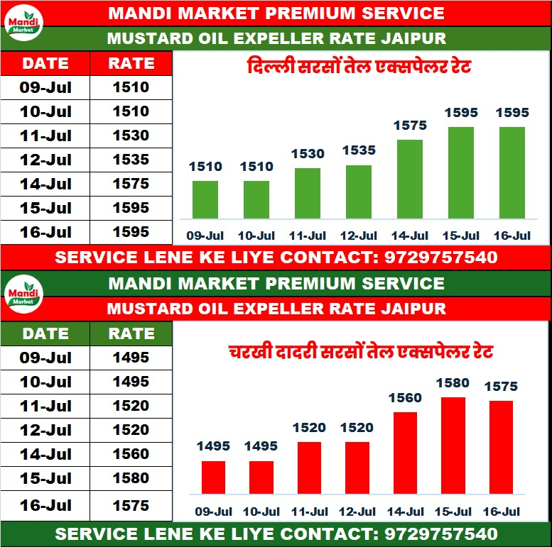 सरसों तेल एक्सपेलर भाव ₹ 1610/1620 तेजी ₹ 10