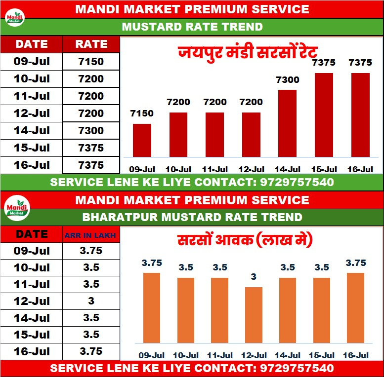 सरसों भाव ₹ 7350 से ₹ 7375 स्थिर