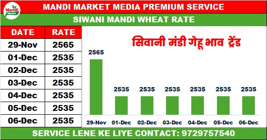 गेहूं मिल क्वॉलिटी भाव ₹2500 मंदी ₹70