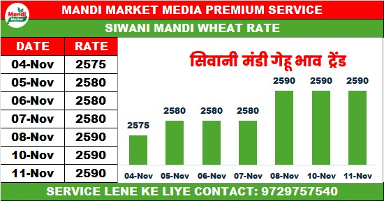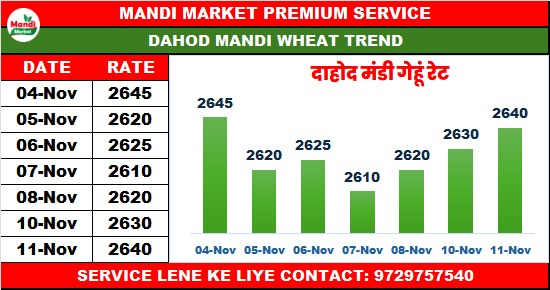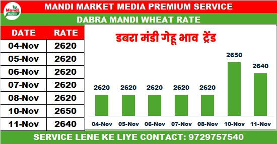 गेहूं बढ़िया राज भाव ₹2640 मंदी ₹10