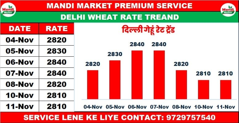 गेहूं नेट भाव ₹3000/3010 मंदी ₹10