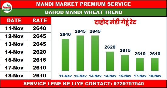 गेहूं मालवराज भाव ₹2600 मंदी ₹50