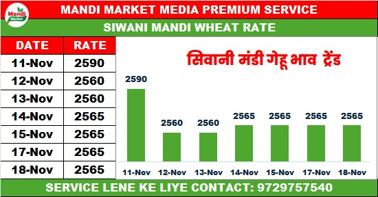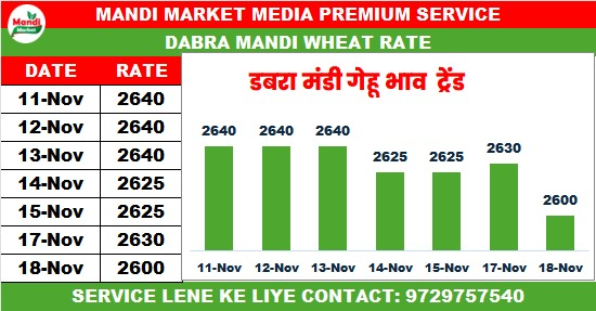 गेहूं बढ़िया राज भाव ₹2600 मंदी ₹25