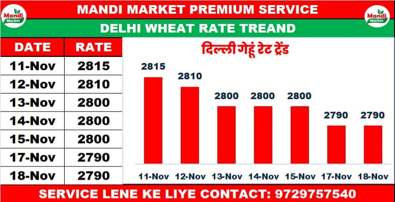 गेहूं मिल क्वालिटी भाव ₹2550 मंदी ₹25