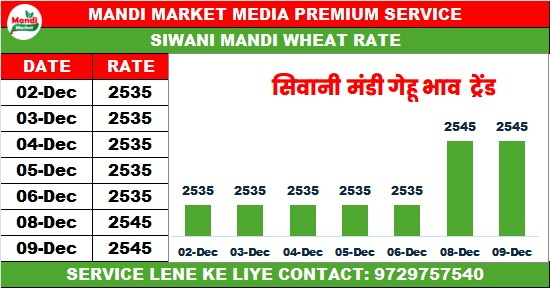 गेहूं मध्य प्रदेश नेट भाव ₹2900 मंदी ₹10