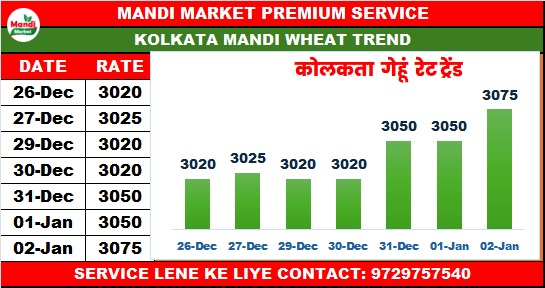 गेहूं नेट भाव ₹3075 तेजी ₹25