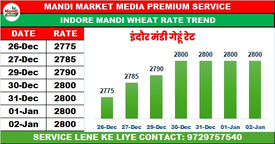 गेहूं पूर्णा भाव ₹2600/2750 मंदी ₹50