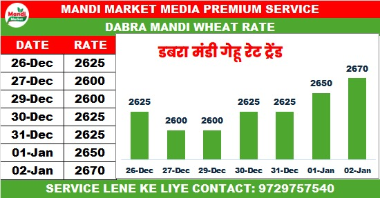 गेहूं बढ़िया राज भाव ₹2670 तेजी ₹20