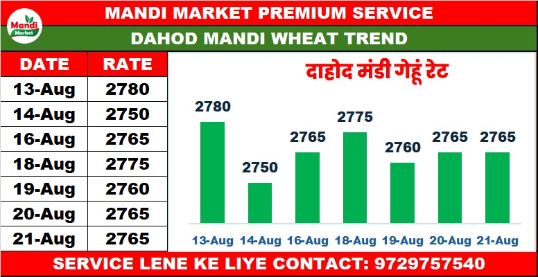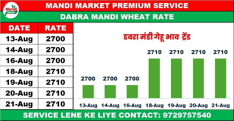 गेहूं मध्य प्रदेश मिल क्वालिटी नेट भाव ₹ 2700 स्थिर