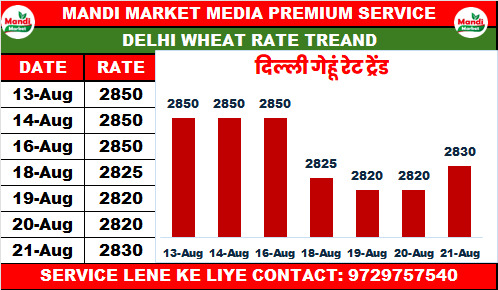 गेहूं भाव ₹ 2730 मंदी ₹ 10 (मंडी पे 1% सी.डी)