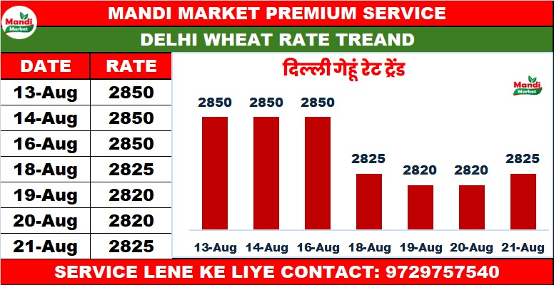 गेहूं (3.5% छूट) भाव ₹ 2850 स्थिर