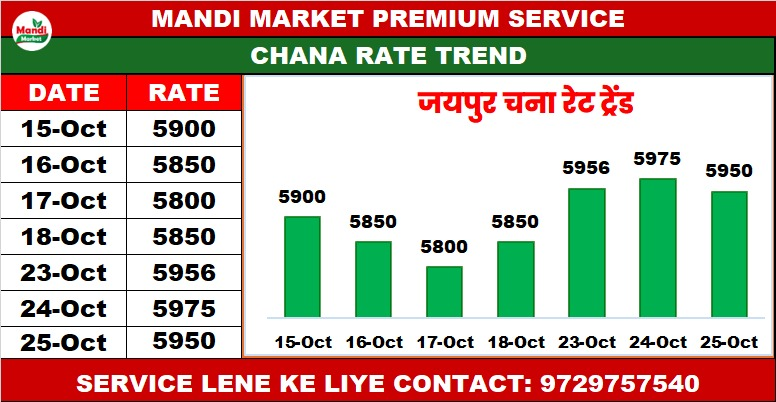 चना (CHANA) राजस्थान जयपुर भाव ₹ 5925/5950 स्थिर