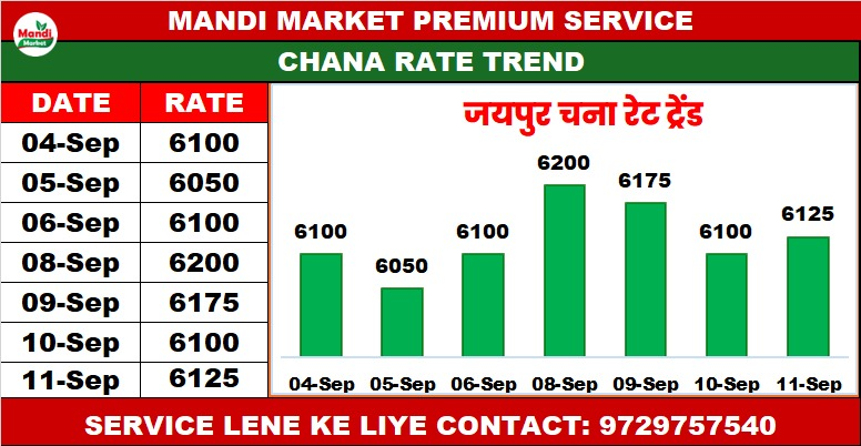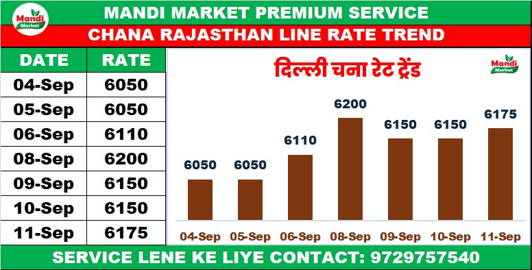 चना राजस्थान लाइन भाव ₹ 6150/6175 तेजी ₹ 25