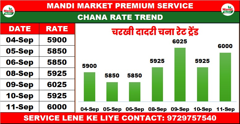 चना मिल क्वालिटी भाव ₹ 6000/6050