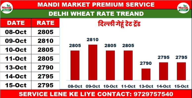 गेहूं नेट भाव ₹2625 मंदी ₹15