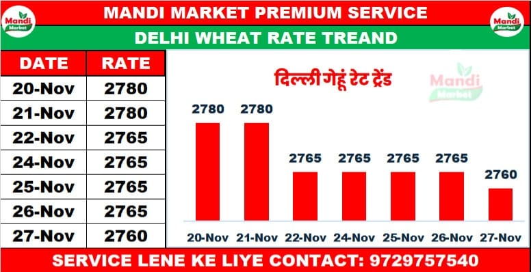 गेहूं मिल क्वालिटी भाव ₹2820 मंदी ₹20