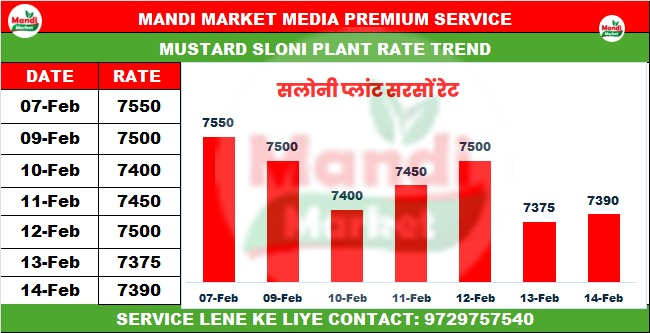 सरसों भाव ₹ 7350 मंदी ₹ 100 ↓