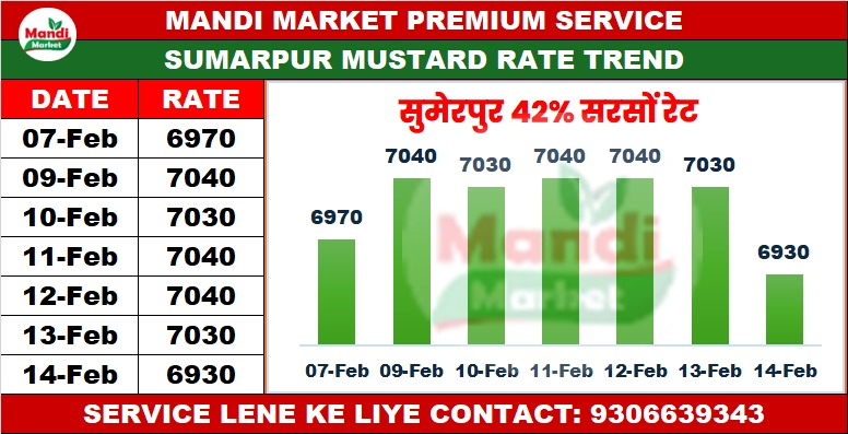 सरसों भाव ₹ 6980 मंदी ₹ 80 ↓