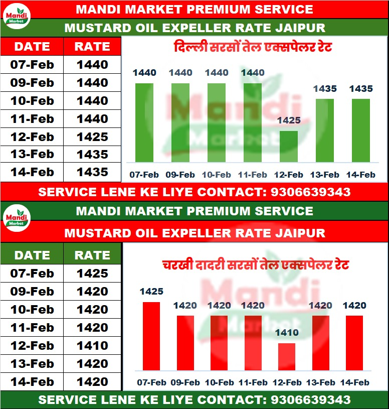 सरसों तेल एक्सपेलर भाव ₹ 1420 मंदी ₹ 20 ↓