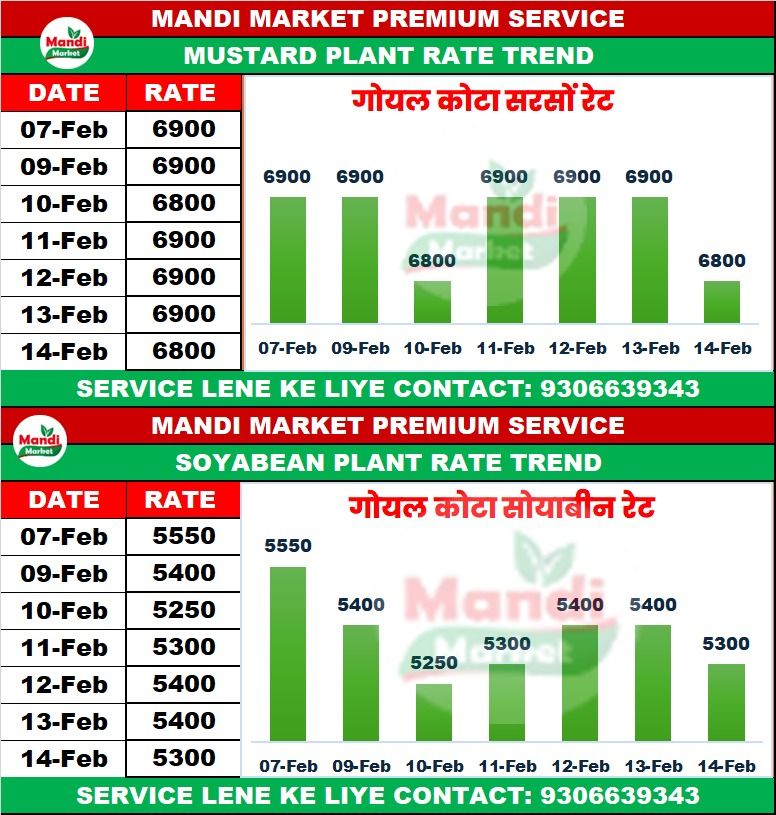सरसों भाव ₹ 6900/6930 मंदी 100
