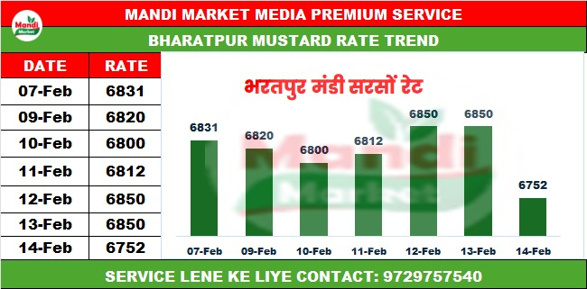 सरसों भाव ₹ 6850 मंदी ₹ 100 ↓