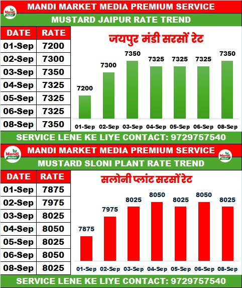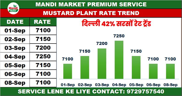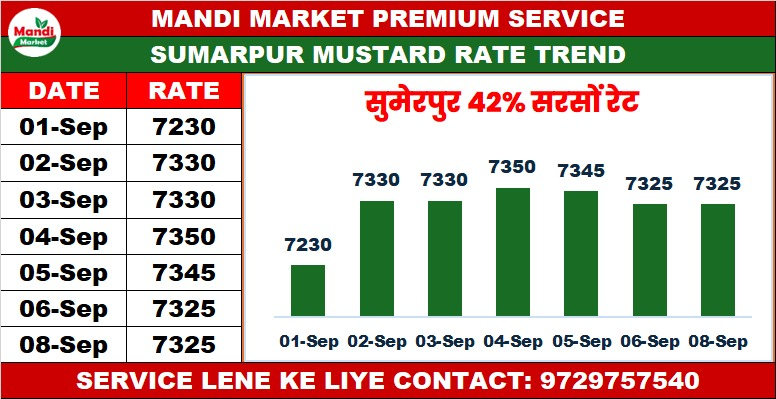 सरसों 42% कंडीशन भाव ₹ 7300/7325