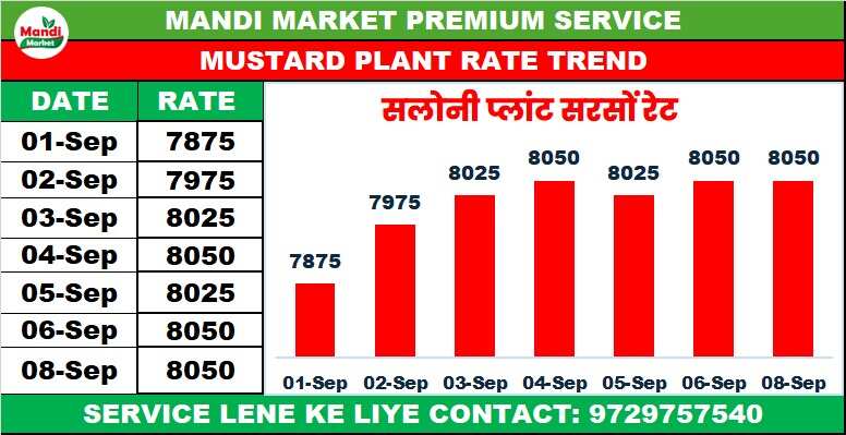 सरसों भाव ₹ 7625 तेजी ₹ 50