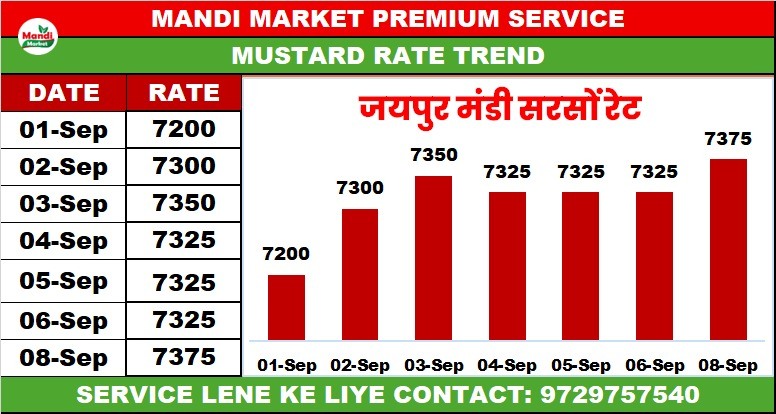 सरसों के बाजार में आया सुधार | जयपुर में सरसों बिकी 7375 तक