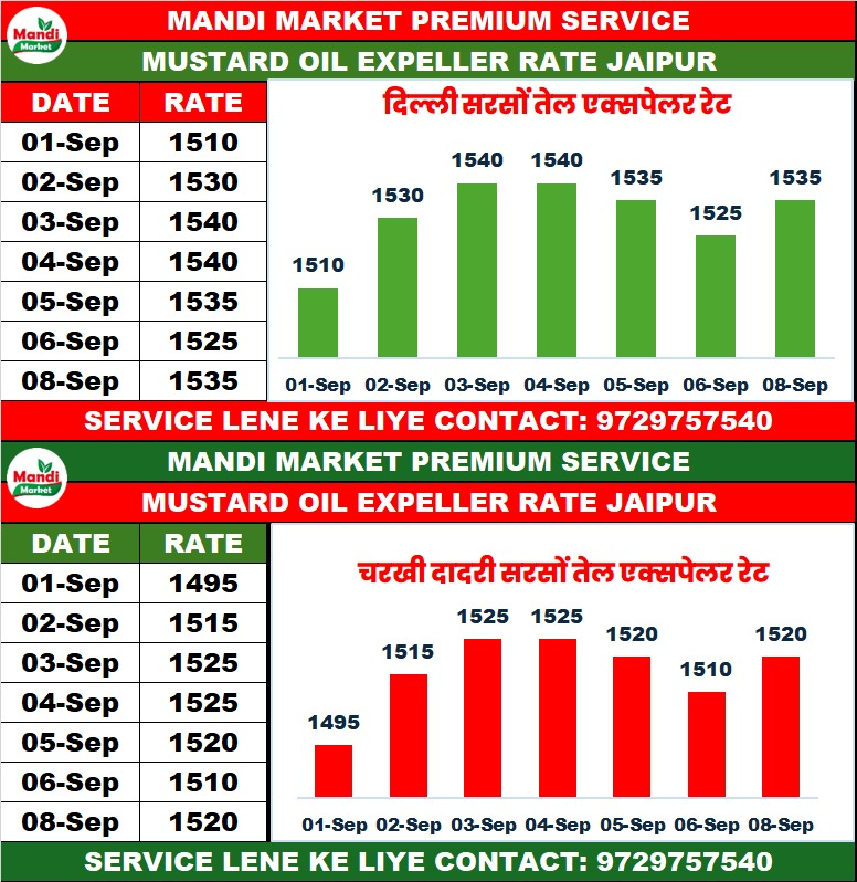 सरसों तेल एक्सपेलर भाव ₹ 1535 तेजी ₹ 10