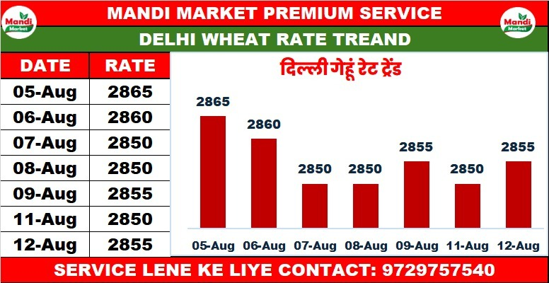 गेहूं मिल क्वालिटी भाव ₹ 2675 मंदी ₹ 5