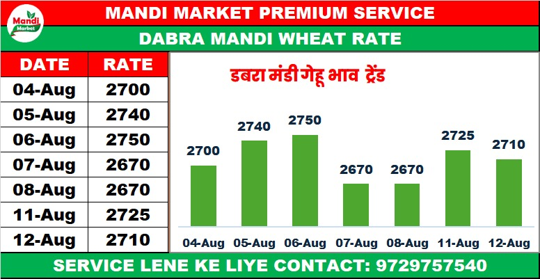 गेहूं बढ़िया राज भाव ₹ 2710 मंदी ₹ 15