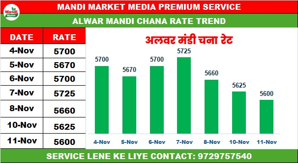चना मंडी भाव ₹ 5700 मंदी ₹ 50