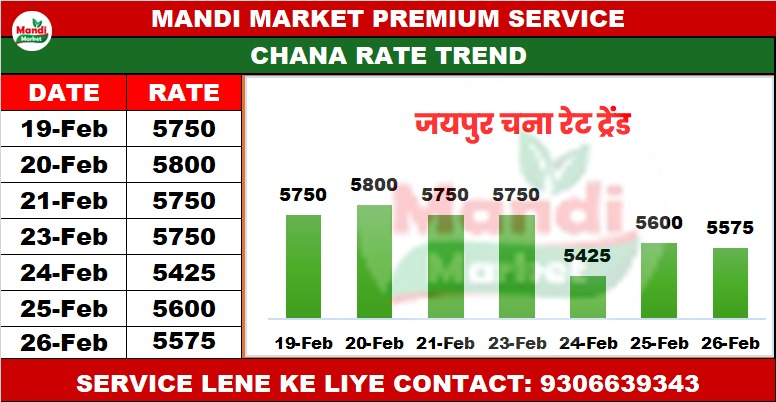 देसी चना भाव ₹ 5575 मंदी ₹ 25