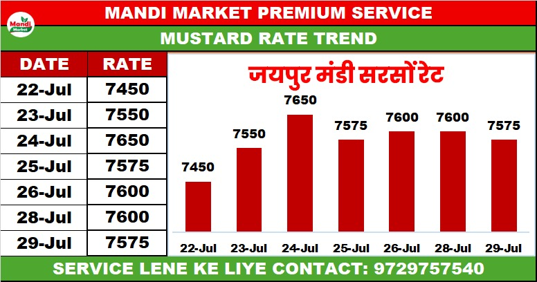 सरसों भाव ₹ 7550/7575 मंदी ₹ 25