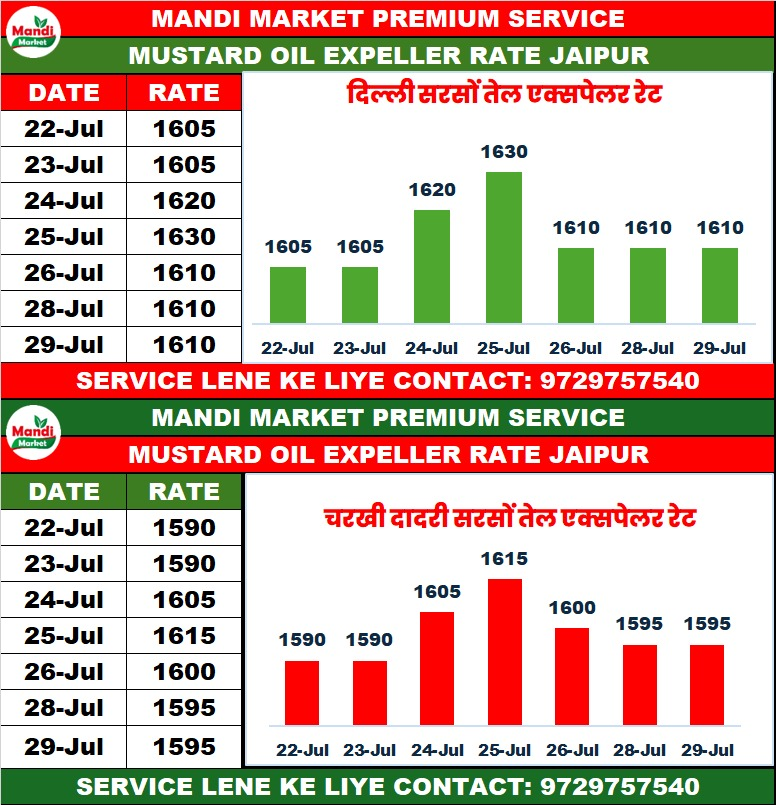 सरसों तेल एक्सपेलर भाव ₹ 1620 मंदी ₹ 5
