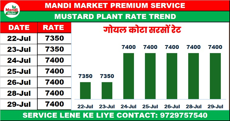 सरसों भाव ₹ 7400 स्थिर ₹ 0