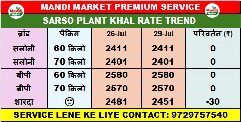 सरसों 42% कंडीशन भाव ₹ 7100 स्थिर