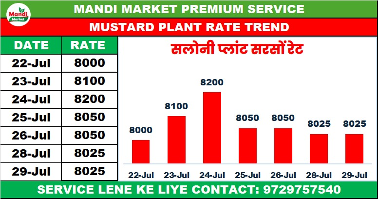 डिग्नेर सरसों भाव ₹ 8025 स्थिर