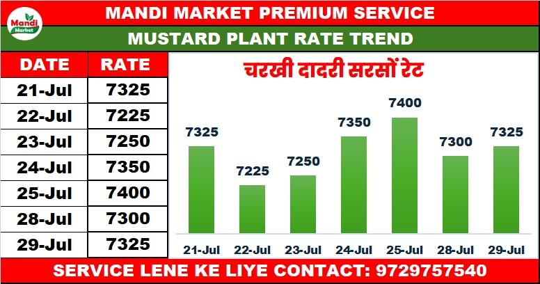 सरसों भाव ₹ 7325 तेजी ₹ 25