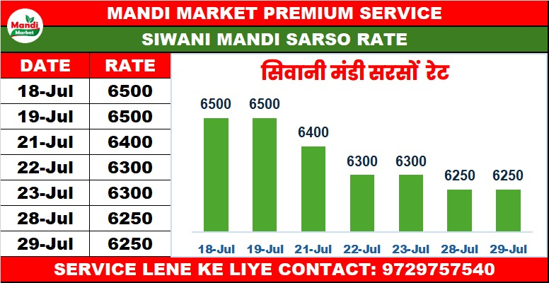 सरसों मंडी भाव ₹ 6700 से ₹ 6800 (स्थिर)