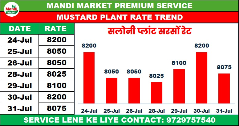मुरैना सरसों भाव ₹ 8075 मंदी ₹ 125