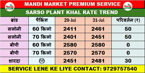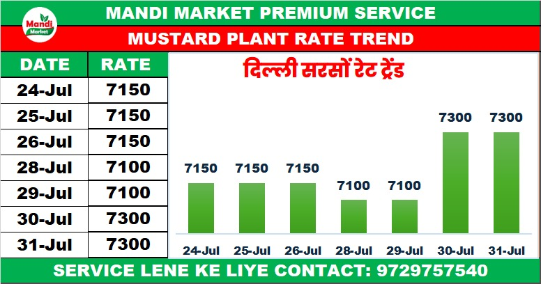 सरसों भाव ₹ 7350 मंदी ₹ 20