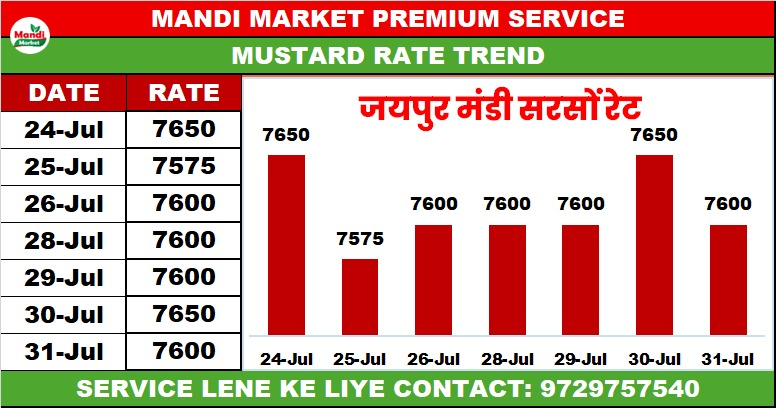 सरसों भाव ₹ 7575/7600 मंदी ₹ 50