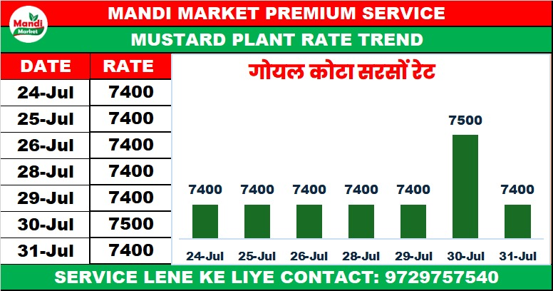 सरसों भाव ₹ 7425 तेजी ₹ 75
