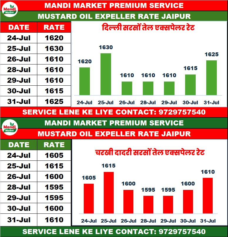 एक्सपेलर तेल भाव ₹ 1625 तेजी ₹ 10