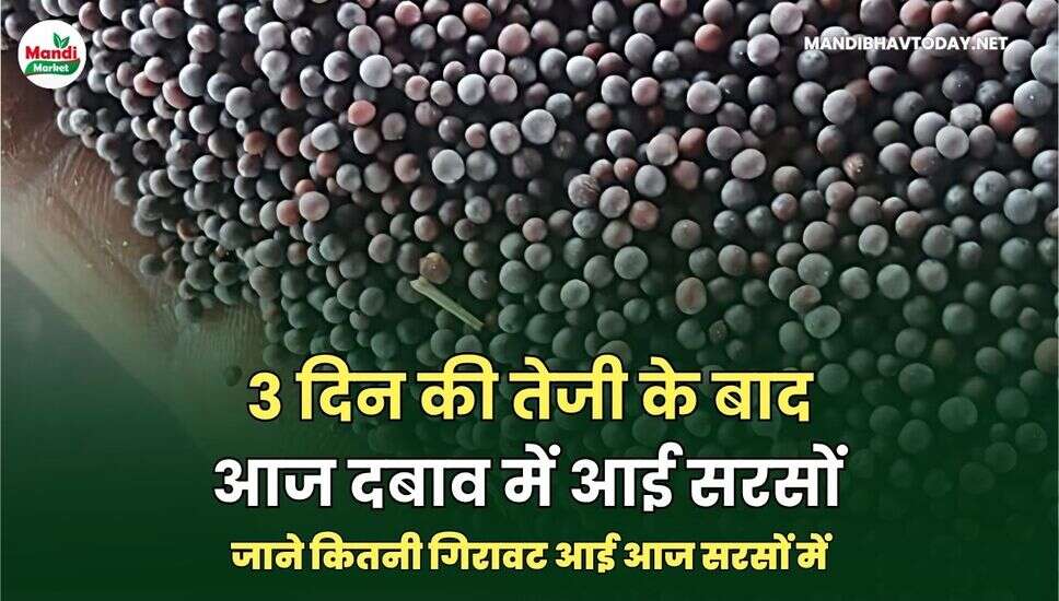 3 दिन की तेजी के बाद आज दबाव में आई सरसों | जाने कितनी गिरावट आई आज सरसों में