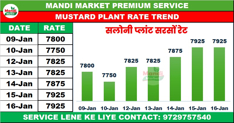 दिग्नेर सरसों भाव ₹ 7925 स्थिर