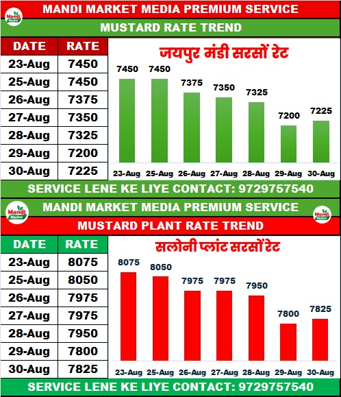 सरसों भाव ₹ 7200/7225 तेजी ₹ 25